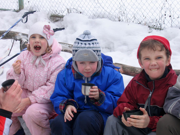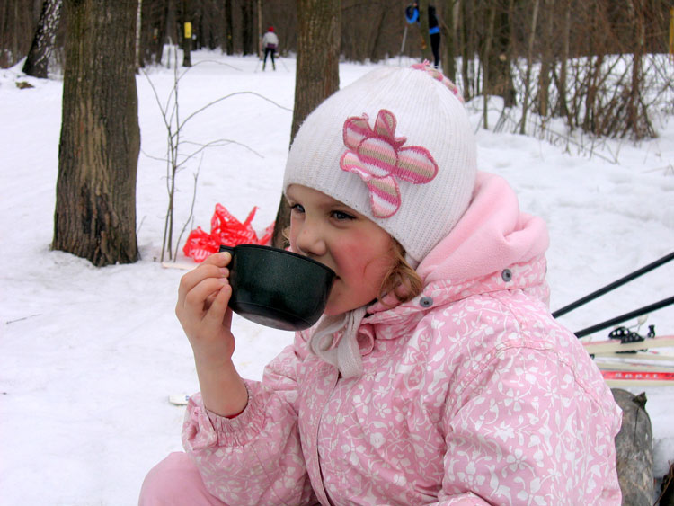 Очень здорово покатались, впрочем как всегда. Дети прокатились 3 км, а мы 5-ти километровый кружок. На этот раз нас малявки обогнали :) Скольжение сегодня было отличным!