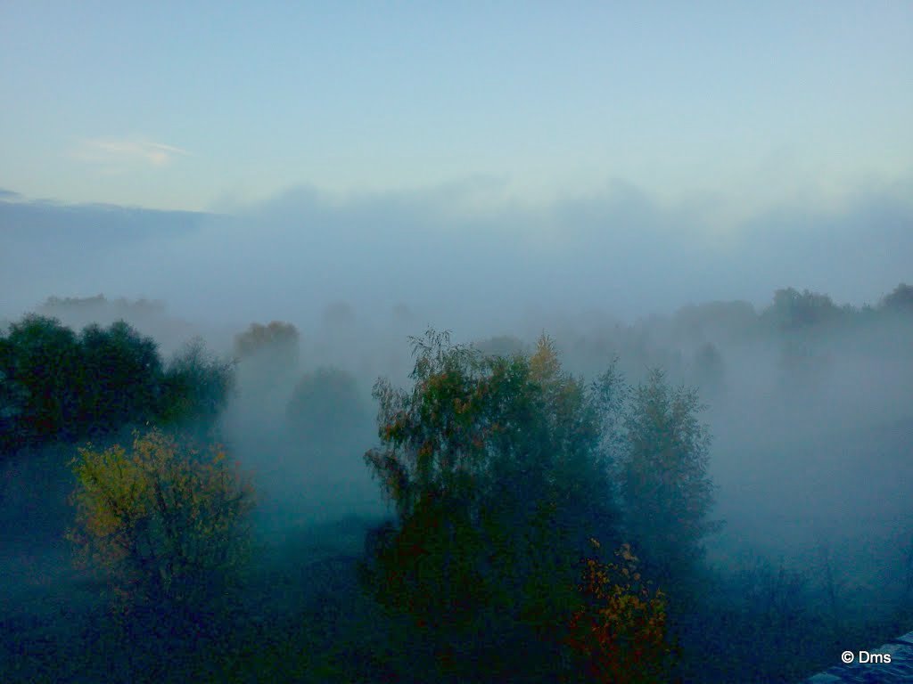 Теперь уже осенние. Теперь остывает строгинская пойма и выдает огромные подушки тумана, толстые, мохнатые, стылые, но красивые.