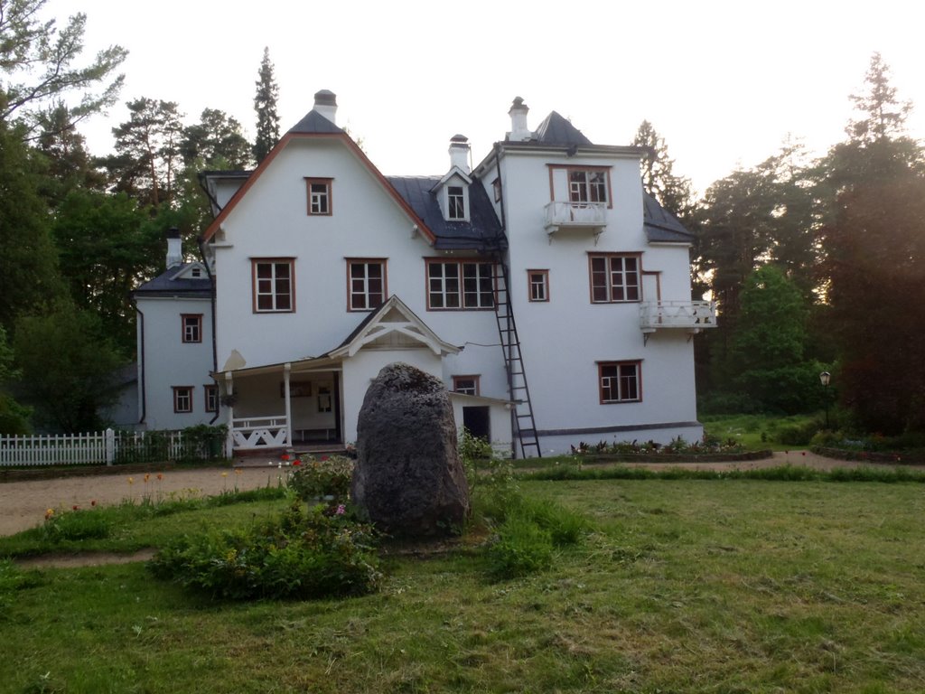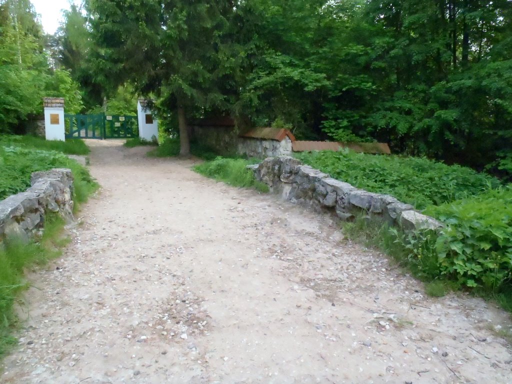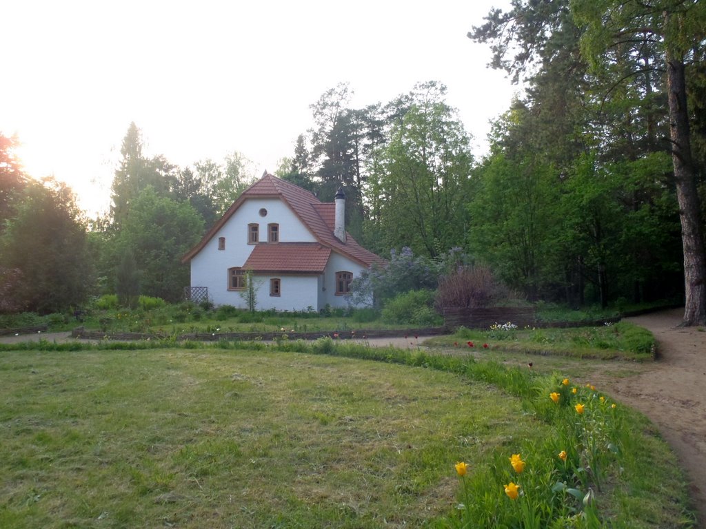 Только я тронулся в указанном направлении, как меня встретил затяжной... спуск, оно и понятно, чай к речке еду, но какой это съезд! Я распластался по велику, покручиваю педальки и вижу как на компе высвечивает 60 - 62 - 64км/ч (максималкой оказалось 66.38км/ч), вот вижу эти цифирки и думаю, блин... мне же еще в эту горку взбираться... Потом еще один подъем - тяжелый, потом спуск, еще подъем, да такой, что я не дотянув метров 15 до верхушки сошел с велика. Поправил штаны, перемялся с ноги на ногу и покатил дальше. Проехав с километр увидел заборчик, замечательные домики и въезд в музей-усадьбу Поленово. Спрашиваю у охранника, где здесь речка, он мне, речка то там, да на великах нельзя, только пешком. Ну я сослался на то, что уже 30км прокатил только чтобы усадьбу с речкой обозреть и обратно еще столько же ехать. Ну тут охранник и сжалился :)