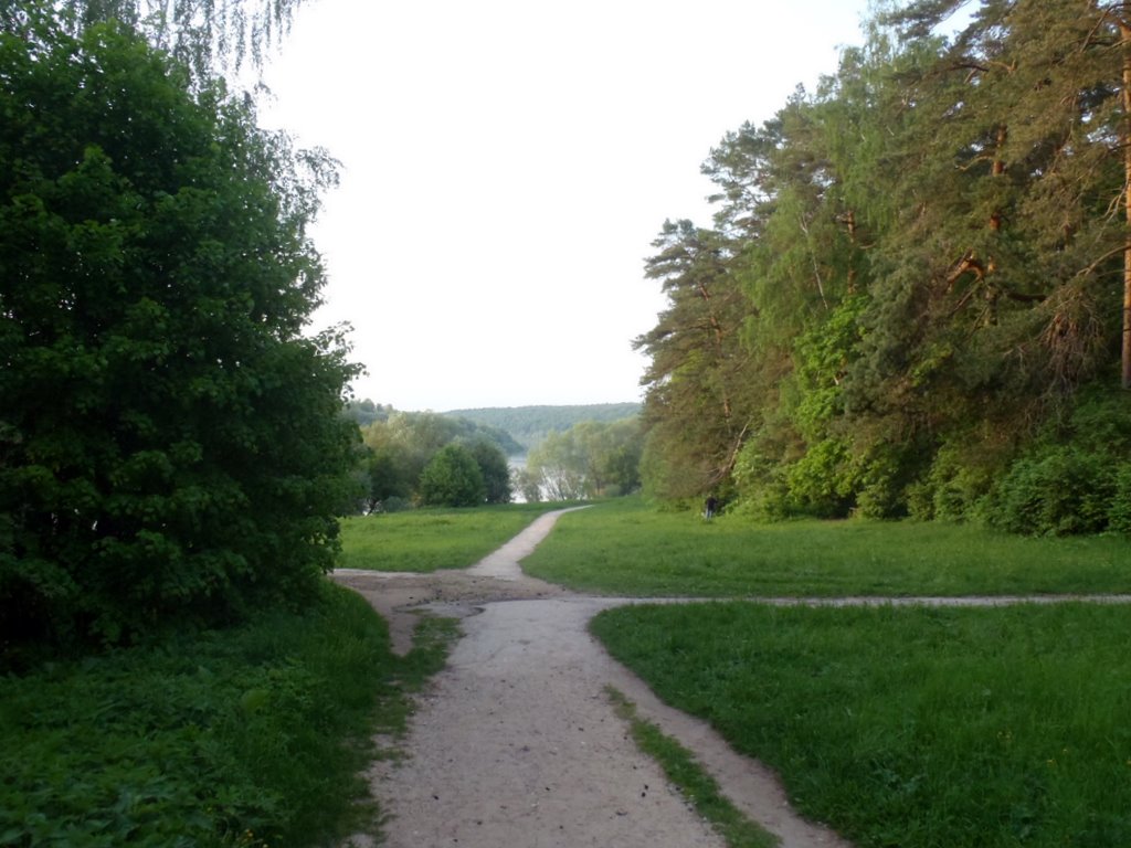 Еду дальше, скорость средняя где-то под 30, еду считаю, чтобы мне до Оки доехать и обратно успеть засветло, тк выехал я в 19:00. Смотрю идут указатели - Поленово. Ну думаю, раз Поленово, значит Поленов рисовал, а он всякую дрянь рисовать не будет, человек знал где устроиться, наверняка там красиво. Теряю указатели и спрашиваю у мирно гуляющих дачников,