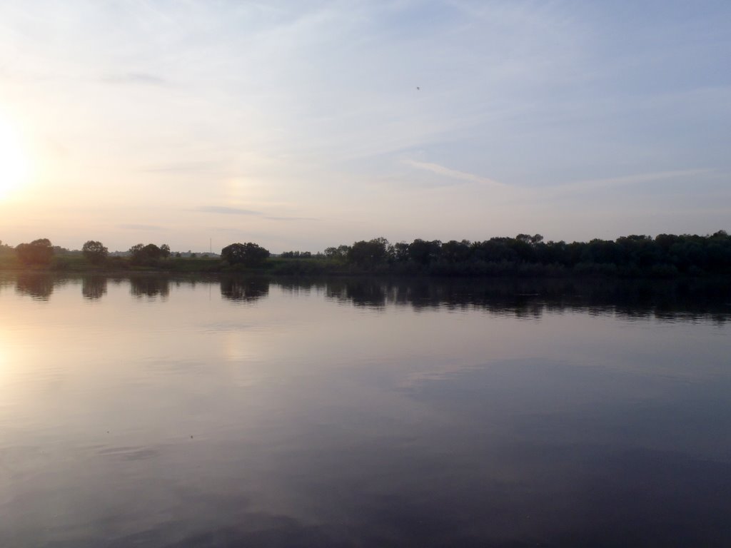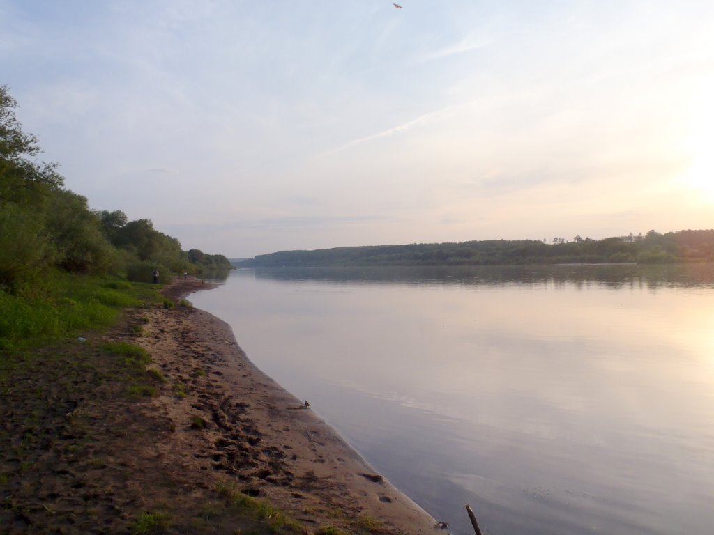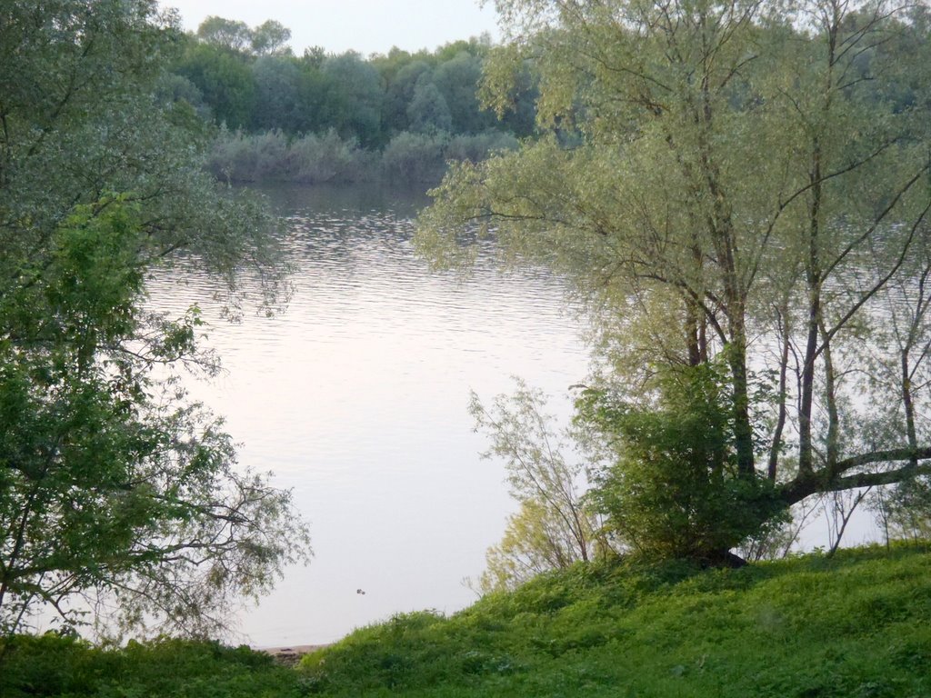 Таки добрался я до Оки. Добрался и как же мне захотелось искупаться... И остановило меня только одно - я поехал налегке и не взял с собой полотенца, майка синтетическая, штанцы тоже - не чем вытереться. Умыл физиономию в Оке. Ока "шеломы выльяти".