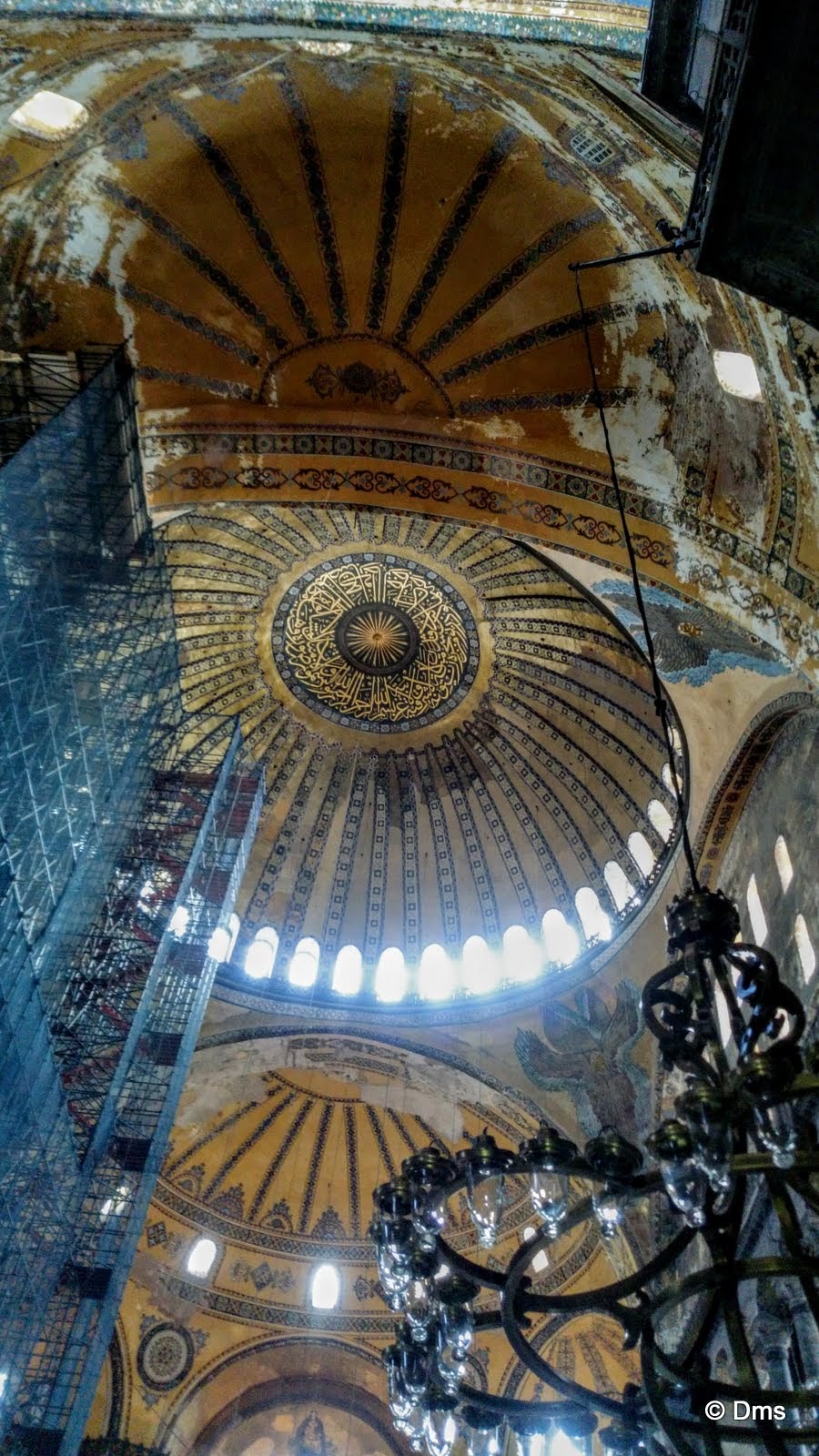 Кривая колонна. Стамбул находится в сейсмически опасной зоне, то за века храм оброс кучей контрфорсов и иных инженерных сооружений для поддержания конструкции. А конструкция немаленькая - высота купола 55 метров.