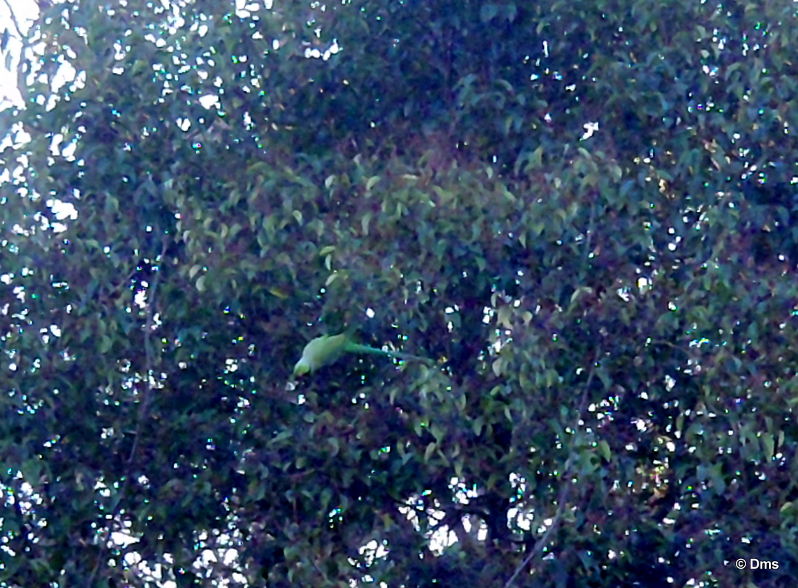 Посмотрели и вправду попугай. Ну может сбежал откуда, чай не воробей, попугай всетаки. Но потом их прилетело аж три штуки и мы осознали, что это аборигены.