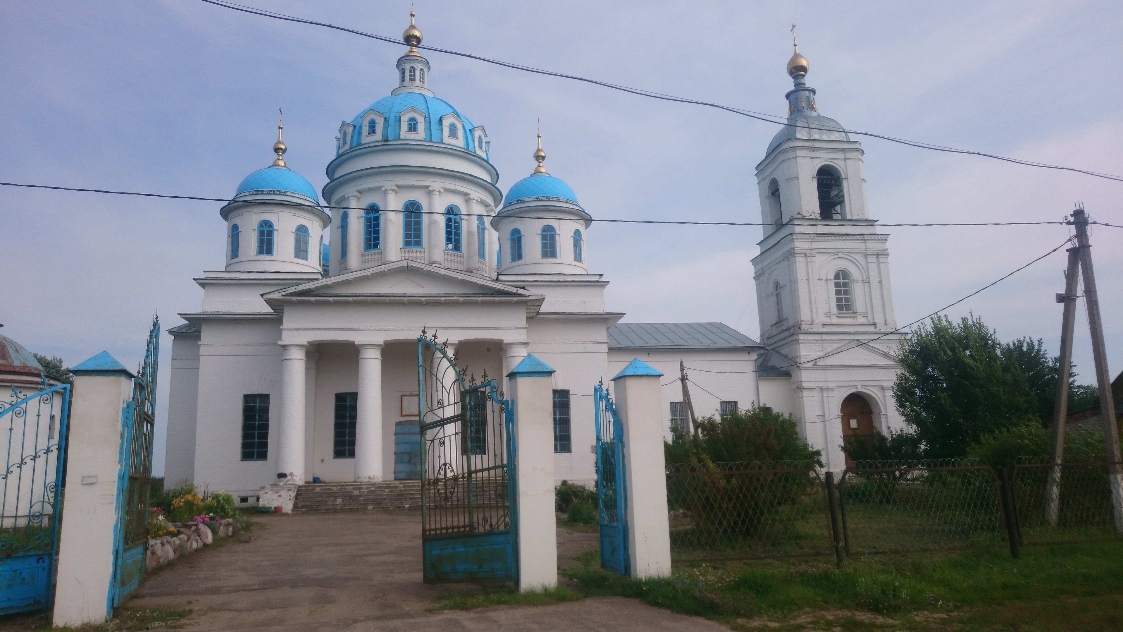Попался непропорционально большой храм для такой маленькой деревеньки, но храм симпатичный, особенно портик с кирпичными колоннами.