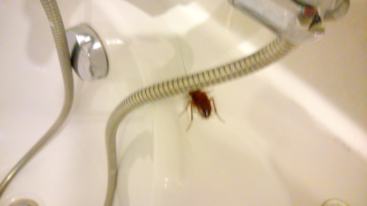 На следующий день Тараканище переполз в душевую кабинку, сел на душевой шланг и грустно сидел в одиночестве. Ему же пить надо, думал я, с другой стороны он большой, уж в ванной воды найдет.