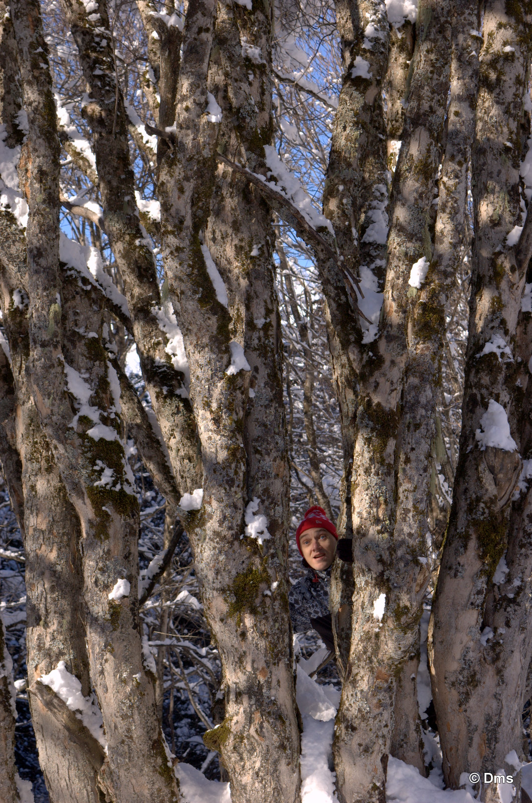 Потоптались за гостиницей, там ничего интересного - помойка. Пойдем, говорю тогда на водопады, я где-то видел указатель и тропочку протоптанную. Пошли искать. Вышли на учебный склон - "лягушатник". Видим стоит аксакал, местный абориген, домайский эндемик - как у него написано на беджике.
