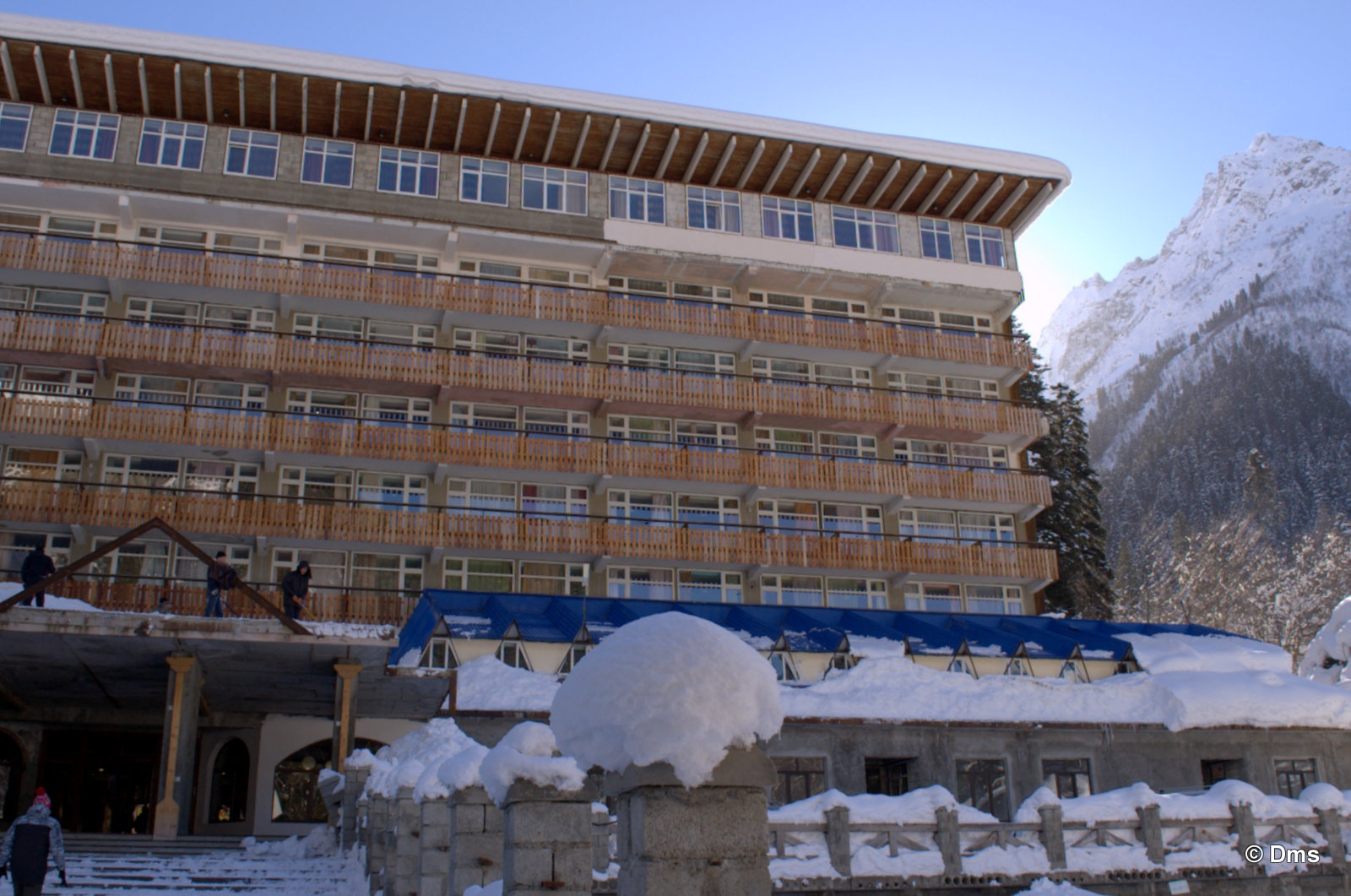 а мы однажды приехали туда (на автобусе из Москвы) а там снега навалило столько, что повалило электрическую вышку и весь поселок без света. И наверх, понятно, не поднимают. Тогда мы сели на лошадок и поехали куда-то на какую-то базу немного повыше. Забыла название. Ну а потом обратно. Потом еще пару дней не было ни света ни воды, самая засада была с туалетом.
