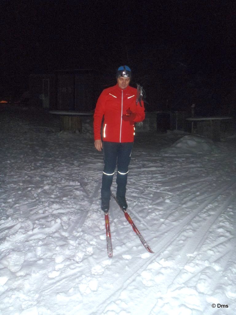 Я тут тоже покатался на беговых лыжах, но лыжи были прокатные и снег был очень теплый. Все слипалось.