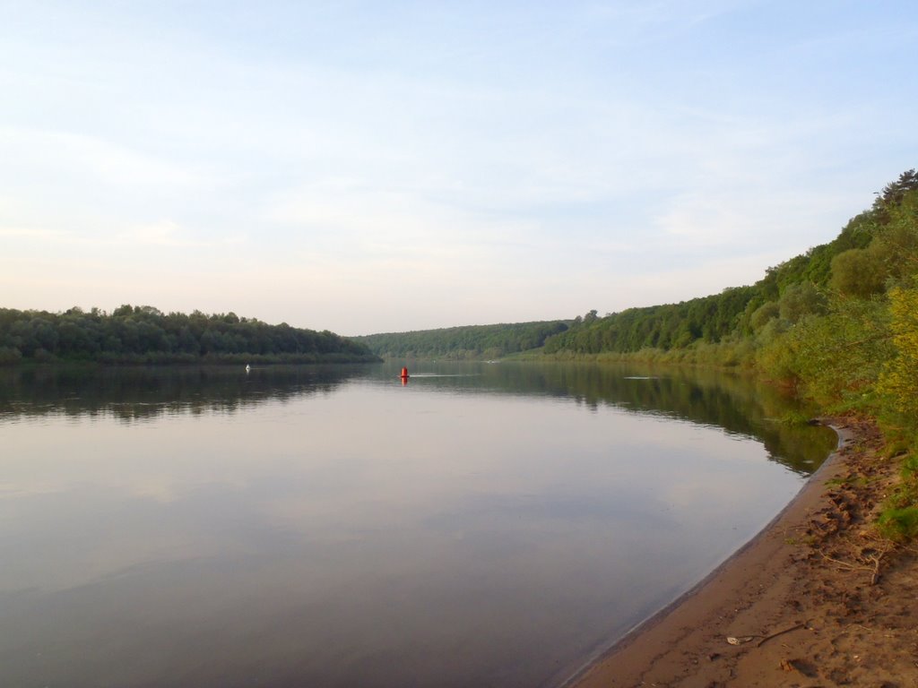 Таки добрался я до Оки. Добрался и как же мне захотелось искупаться... И остановило меня только одно - я поехал налегке и не взял с собой полотенца, майка синтетическая, штанцы тоже - не чем вытереться. Умыл физиономию в Оке. Ока "шеломы выльяти".