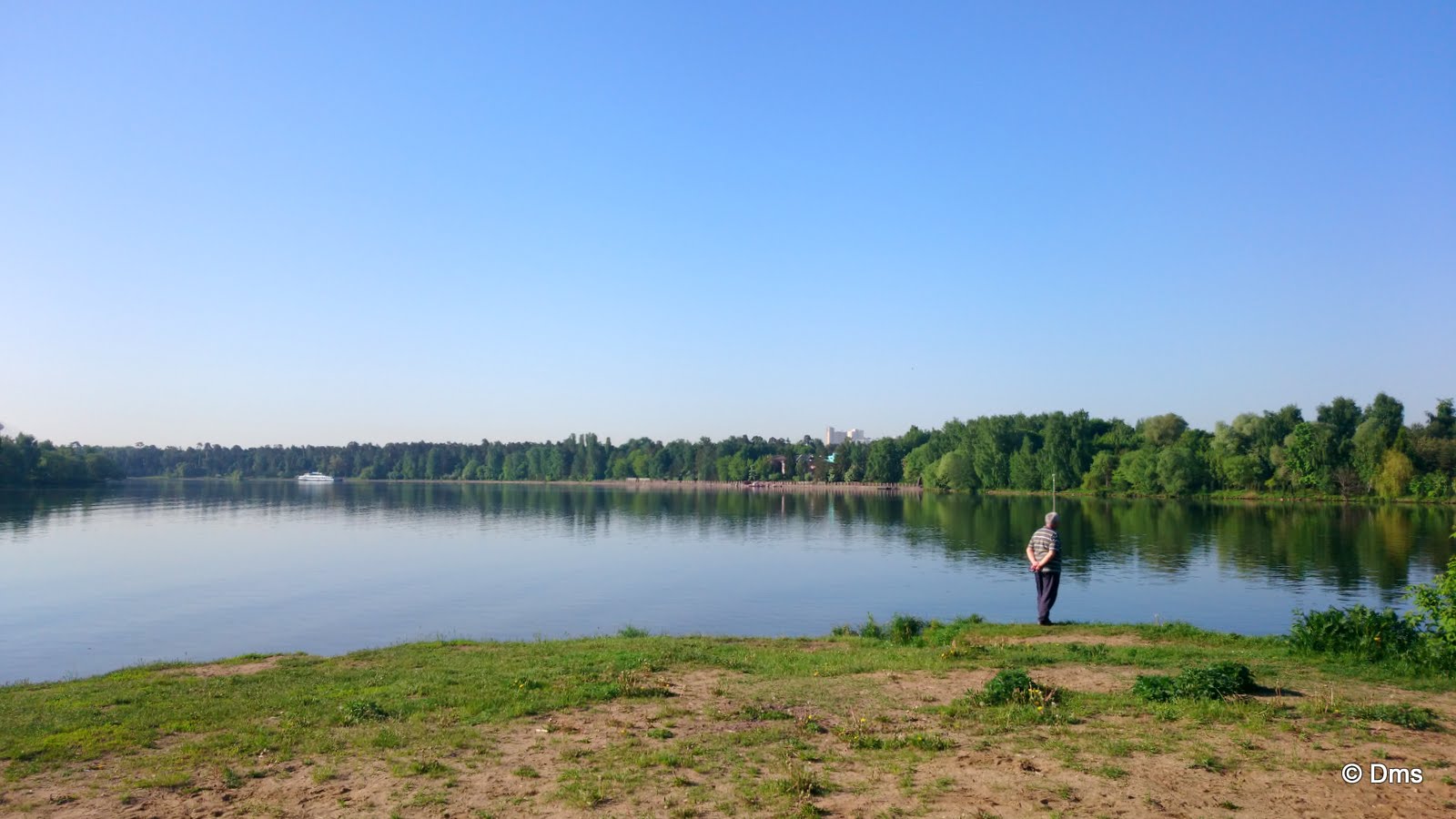 Красиво, птички поют, пахнет цветением. Но бежать, жуть, как тяжело. Я весь мокрым стал в один момент. Бегу на пульсе 135 и пыхчу, как паровоз. Переходил пару раз на ходьбу, зачем себя насиловать. Пробежал три километра, смотрю - по времени уже пора ехать искупаться и домой, завтракать и на работу. Вел охранял пес - никого не подпускал и отчаянно тявкал. Сел на вел и поехал на пляж напротив Серебряного бора.