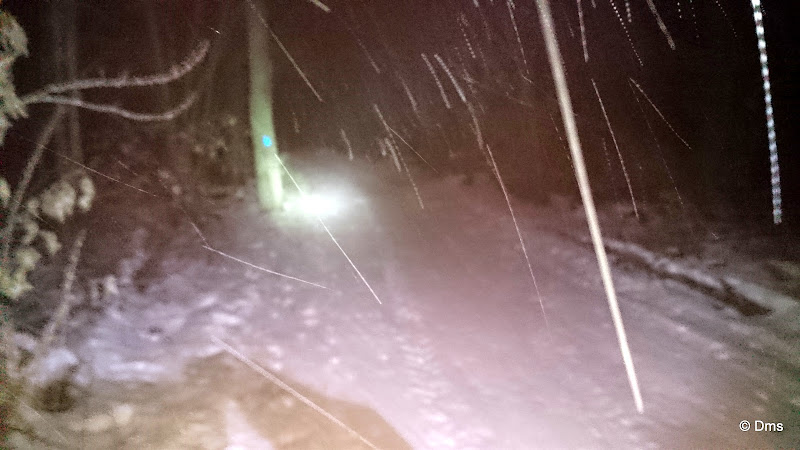 Зарядил фонарик и поехал в Ромашково в субботу вечером сезон открывать. Оделся-обулся, встал в лыжи, зажигаю только что зарядившийся фонарик на 1200 люменов, а он выдает на 3 порядка меньше. А что делать, приехал, нужно открывать. Первые 2 км, фонарик еще обозначал световое пятнышко, но потом, сказал, мол хочу кушать и отключился. Хорошо что трасса знакомая и снега много - спокойно доехал до финиша и решил, что еще кружок в кромешной темноте я уже не хочу. И тем не менее - сезон открыт!