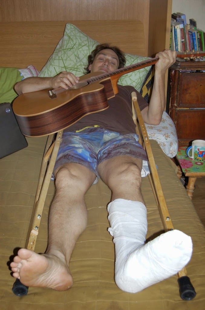 Не, хорошо, что не перелом. Надрыв связок голеностопного сустава. Прыгал на блок, приземлился на чужую ногу. моя подвернулась и я с прыжка на нее подвернутую приземлился. Больничный выписали до дня независимости, но я надеюсь, что на следующей неделе, я уже оклемаюсь и пойду на работу. С волейбола, я с этой ногой ехал от миусской до строгина на веле (17 км). Средняя скорость оказалась 18 км\ч, а пульс 100-120 - такая халява. Единственно, было больно, когда нужно было от педали отстегнуться, если случайно шипы застегивались.